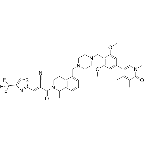 CCT373567 demonstrates potent and selective BCL6 inhibition, exhibiting an IC50 of 2.9 nM in biochemical TR-FRET assays and 25.9 nM in cellular NanoBRET assays. This cell-permeable compound maintains robust activity in physiological settings, highlighting its potential as a targeted therapeutic agent.