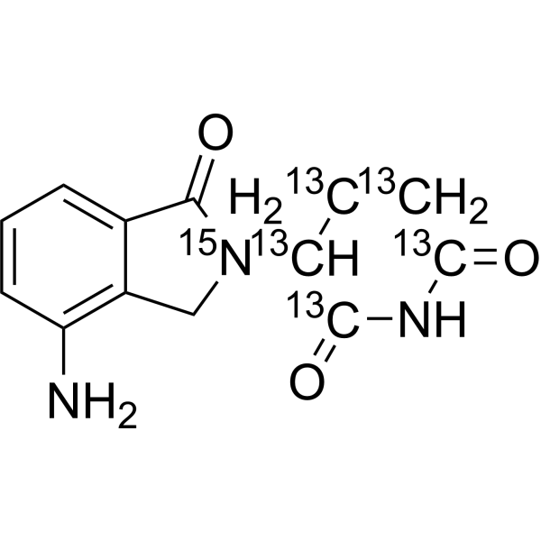 Lenalidomide-13C5,15N is an isotopically labeled analog of lenalidomide (HY-A0003; CC-5013), a thalidomide-derived molecular glue compound. This orally bioavailable immunomodulator functions through selective cereblon (CRBN) E3 ubiquitin ligase engagement, mediating targeted ubiquitination and proteasomal degradation of lymphoid transcription factors IKZF1 and IKZF3 via the CRBN-CRL4 complex. The compound demonstrates dual therapeutic activity by both suppressing proliferation of mature B-cell malignancies (including multiple myeloma) and enhancing T-cell immunostimulation through IL-2 induction.