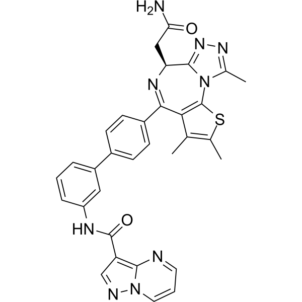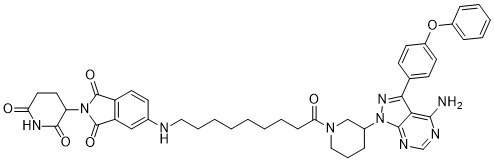 PLX-3618 is a targeted molecular glue that induces the degradation of BRD4, a key epigenetic regulator implicated in cancer. It achieves potent BRD4 degradation (DC50 = 12.2 nM) by recruiting the E3 ubiquitin ligase adapter DCAF11, which tags BRD4 with polyubiquitin chains for proteasome-mediated destruction.