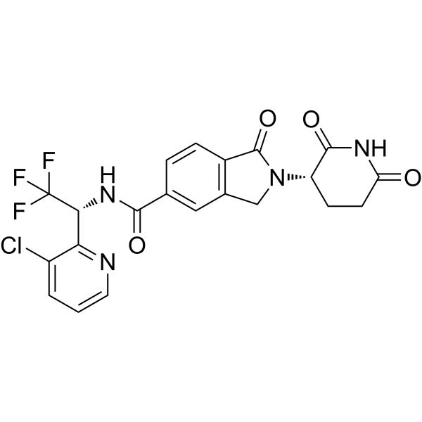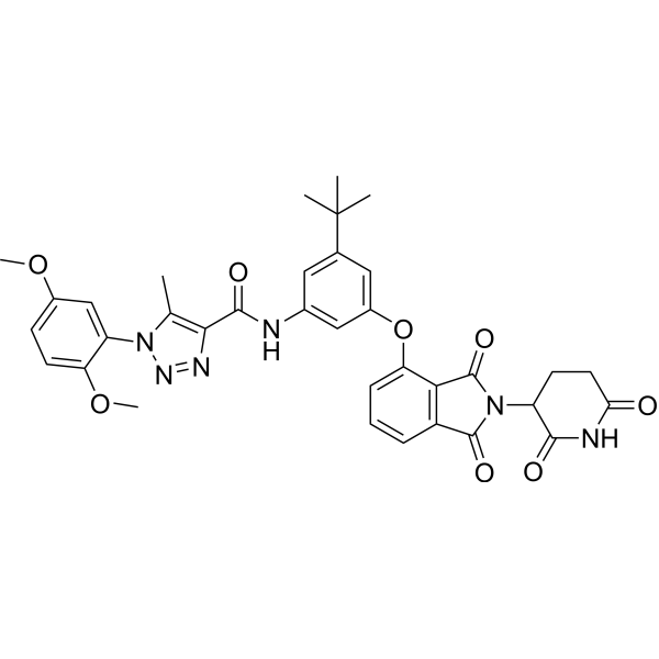 ZXH-1-161 is a potent cereblon (CRBN) modulator, demonstrating an IC50 value of 39 nM in MM1.S wild-type cells. It exhibits selective degradation activity toward GSPT1 and is a valuable tool for researching multiple myeloma.