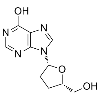 Didanosine(Videx) is a reverse transcriptase inhibitor with an IC50 of 0.49 μM. Target: NRTIs; HIV Didanosine is a dideoxynucleoside compound in which the 3'-hydroxy group on the sugar moiety has been replaced by a hydrogen.