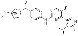 AZD4573 is a CDK9 inhibitor with an IC50 of <3 nM extracted from patent US 20160376287 A1, example 14.