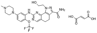 Onvansertib, also know as NMS-P937, PCM-075 and NMS1286937, is an oral Polo-like kinase 1 (PLK1) inhibitor, a key regulator of cell cycle progression and mitosis. It selectively inhibits PLK1 with a reported half-maximal inhibitory concentration (IC₅₀) of approximately 2 nM, while demonstrating significantly lower activity against other Polo-like kinases (PLK2 and PLK3). Onvansertib has shown potent anti-proliferative effects in various cancer cell lines, particularly in colorectal cancer, acute myeloid leukemia (AML), and prostate cancer models. It induces mitotic arrest, leading to apoptosis in tumor cells. Onvansertib has demonstrated synergistic effects when combined with chemotherapeutics such as irinotecan, 5-fluorouracil (5-FU), and decitabine, enhancing their efficacy in resistant cancers.