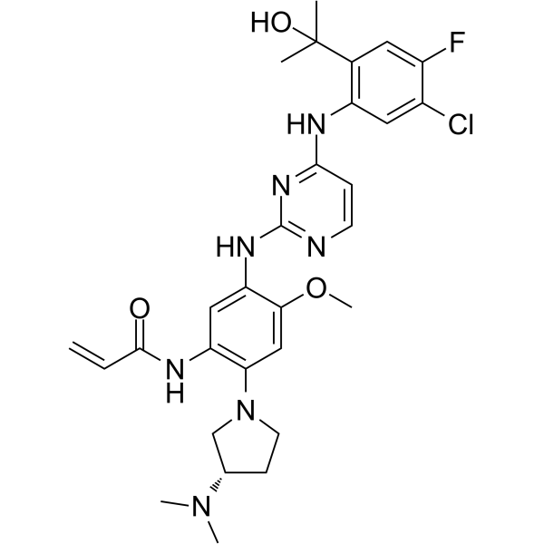 (S)-Sunvozertinib ((S)-DZD9008), the S-enantiomer of Sunvozertinib, shows inhibitory activity against EGFR exon 20 NPH and ASV insertions, EGFR L858R/T790M mutation and Her2 exon20 YVMA insertion (IC50=51.2 nM, 51.9 nM, 1 nM, and 21.2 nM, respectively).