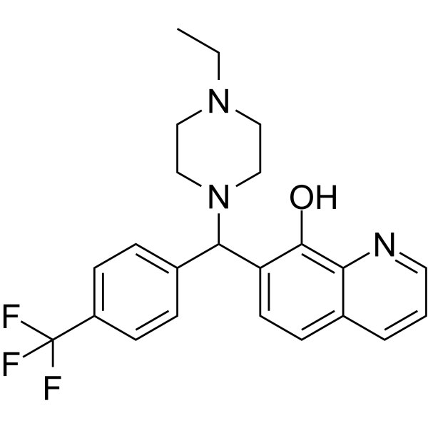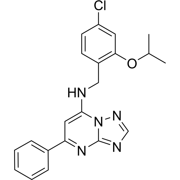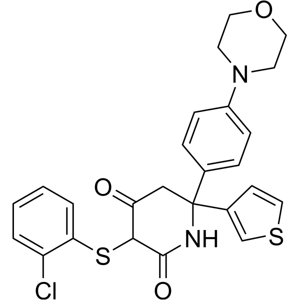 Metarrestin (ML246) is a specific inhibitor of perinuclear compartment (PNC), disrupts PNCs in PC3M-GFP-PTB cells with IC50 of 0.39 uM, specifically binds eEF1A2.