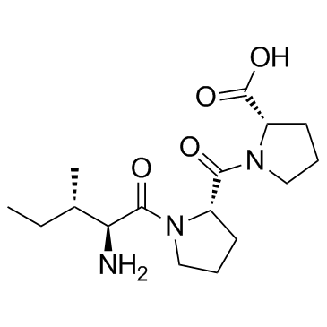 H-Ile-Pro-Pro-OH, a milk-derived peptide, inhibits angiotensin-converting enzyme (ACE) with an IC50 of 5 μM. Antihypertensive tripeptides.