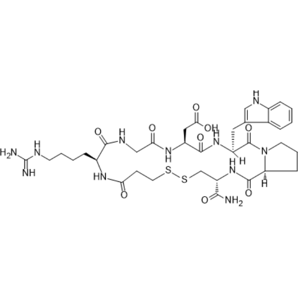 Eptifibatide is a potent glycoprotein IIb/IIIa antagonist (GPIIb/IIIa; Kd = 120 nM) that inhibits platelet aggregation. Eptifibatide prevents binding of the adhesion proteins fibrinogen and von Willebrand factor to GPIIb/IIIa on the surface of activated platelets to prevent aggregation and thrombus formation. It inhibits ADP-induced citrated blood aggregation (IC50 = 0.11-0.22 μg/ml) in vitro and in vivo (IC50 = 52 μg/ml in porcine plasma). Formulations containing eptifibatide have been used to reduce risk of thrombolysis in myocardial infarction in patients undergoing percutaneous coronary intervention.