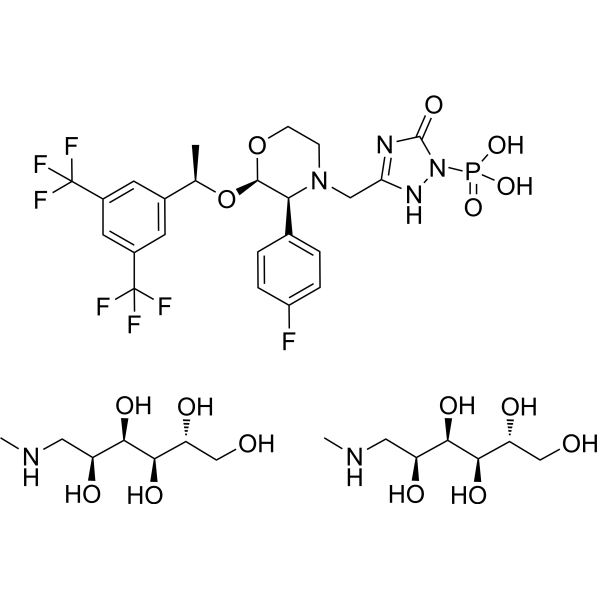 Fosaprepitant, also known as MK0517, is an antiemetic drug, administered intravenously. It is a prodrug of aprepitant. Fosaprepitant was developed by Merck & Co. and was approved. It is a prodrug of Aprepitant. It aids in the prevention of acute and delayed nausea and vomiting associated with chemotherapy treatment. Fosaprepitant is a weak inhibitor of CYP3A4, and aprepitant, the active moiety, is a substrate, inhibitor, and inducer of CYP3A4