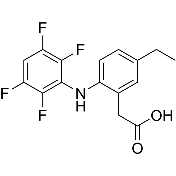 Robenacoxib is a nonsteroidal anti-inflammatory drug (NSAID) used in veterinary medicine for the relief of pain and inflammation in cats and dogs, a Cyclooxygenase(COX)-1 and COX-2 inhibitor..