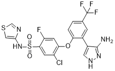 SNS-314 is a synthetic small molecule Aurora kinase (AK) inhibitor with potential antineoplastic activity. Aurora kinase inhibitor SNS-314 selectively binds to and inhibits AKs A and B, which may result in the inhibition of cellular division and proliferation in tumor cells that overexpress AKs. AKs are serine-threonine kinases that play essential roles in mitotic checkpoint control during mitosis.