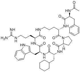 PMX53 (Ac-Phe-cyclo(Orn-Pro-D-Cha-Trp-Arg)) is a potent C5a receptor (CD88) antagonist with IC50 of 20 nM, also is an agonist for Mas-related gene 2 (MrgX2) in human mast cells; PMX-53 (10 nM) inhibited C5a-induced Ca(2+) mobilization in HMC-1 cells, but at higher concentrations (>30 nM) it caused degranulation in LAD2 mast cells, CD34(+) cell-derived mast cells, and RBL-2H3 cells stably expressing MrgX2; inhibits zymosan-, carrageenan-, LPS- and antigen-induced hypernociception in rats.