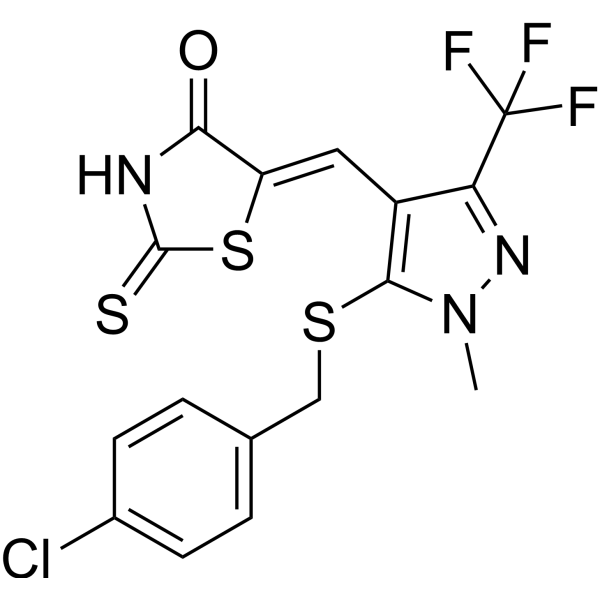 MLS-573151 (MLS000573151) is a selective GTPase Cdc42 inhibitor with an EC50 of 2 μM. MLS-573151 is inactive against other GTPases family members, such as Rab2, Rab7, H-Ras, Rac1, Rac 2 and RhoA wild-type. MLS-573151 acts by blocking the binding of GTP to