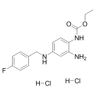Retigabine 2Hcl (Ezogabine; D23129) is a Kv7.2-7.5 (KCNQ2-5) neuronal potassium channel opener witrh anticonvulsant activity.