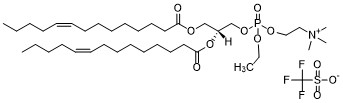 14:1 EPC (Tf Salt) is a cationic derivatives of phospholipids consisting entirely of biological metabolites linked with two 14-carbon fatty acid tails with single alkene groups in each tail. The lipid has low toxicity and is biodegradable. Reagent grade, for research use only.