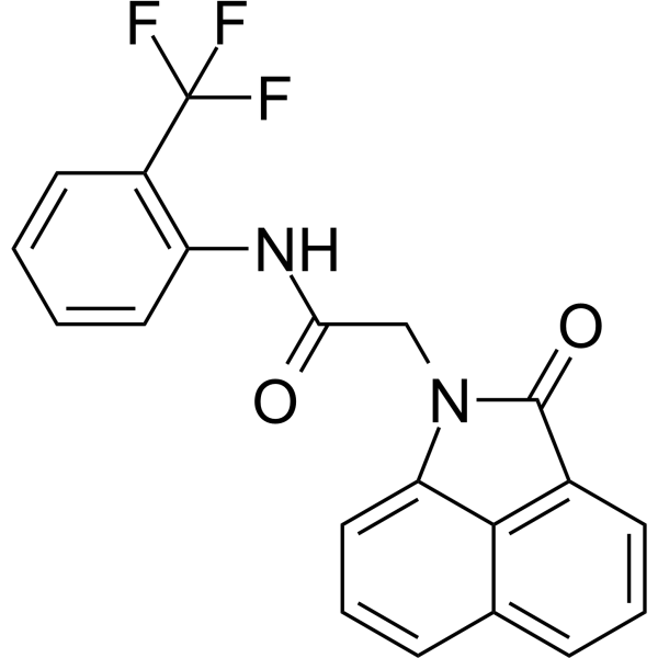 YM-244769 is a potent, selective and orally active Na+/Ca2+ exchanger (NCX) inhibitor. YM-244769 preferentially inhibits NCX3 and suppresses the unidirectional outward NCX current (Ca2+ entry mode), with IC50s of 18 nM and 50 nM, respectively. YM-244769 efficiently protects against hypoxia/reoxygenation-induced SH-SY5Y neuronal cell damage. YM-244769 can also increase urine volume and urinary excretion of electrolytes in mice.