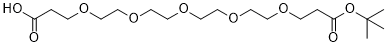 AAcid-PEG5-C2-Boc is a PEG derivative containing a t-butyl protected carboxyl group with a terminal carboxylic acid. The terminal carboxylic acid can be reacted with primary amine groups in the presence of activators (e.g. EDC, or DCC) to form a stable amide bond. The hydrophilic PEG spacer increases solubility in aqueous media. The t-butyl protected carboxyl group can be deprotected under acidic conditions.