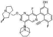 MRTX 1133 is a potent and selective KRAS G12D inhibitor. MRTX1133 targets the KRAS G12D protein in both active and inactive states. In preclinical studies, MRTX1133 exhibited a long half-life, an ability to bind the KRAS G12D protein in both active and inactive states, and selective inhibition of KRAS G12D mutant cancer cells.