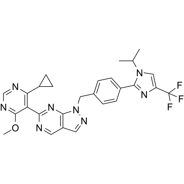 Nedisertib (M3814, MSC2490484A) is a highly potent, selective, orally bioavailable inhibitor of DNA-PK.