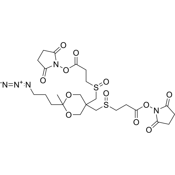 Azide-A-DSBSO crosslinker is a mass spectrometry (MS)-cleavable, membrane-permeable, homobifunctional, azide-labeled, acid-cleavable cross-linked peptide. Azide-A-DSBSO crosslinker enables the study of protein-protein interactions via cross-linking mass spectrometry (XL-MS).