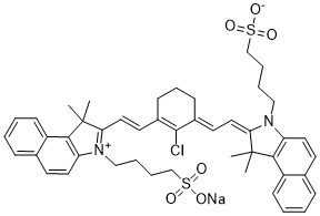 IR-820 is a near infrared dye with its excellent fluorescence penetration, good color rendering and better stability. IR-820 is an infrared blood pool contrast agent to detect and quantify diseased tissue in live animals. IR-820 has maximal excitation and emission wavelengths of 710 and 820 nm, respectively. IR-820 emission is significantly improved in vivo on serum binding to albumin, and elimination occurs predominantly via the gastrointestinal tract. Note: this product has ~80% dye.