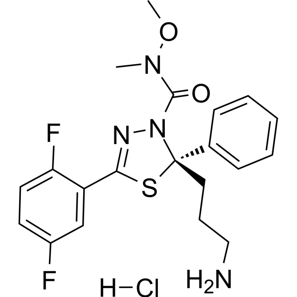 Filanesib (ARRY-520) hydrochloride is a selective and noncompetitive kinesin spindle protein (KSP) inhibitor, with an IC50 of 6 nM for human KSP. Filanesib induces cell death by apoptosis in vitro. Filanesib has potent anti-proliferative activity.