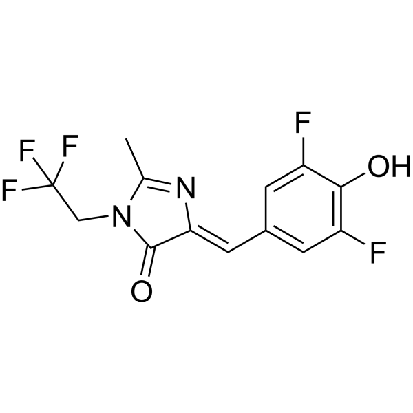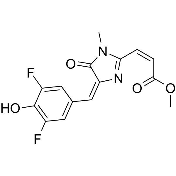 DFHO is a fluorogenic ligand of Corn fluorogenic aptamer. The RNA aptamer, Corn binds DFHO with a Kd value of 70 nM and converts it to a fluorescent form, enabling RNA imaging in cells.
