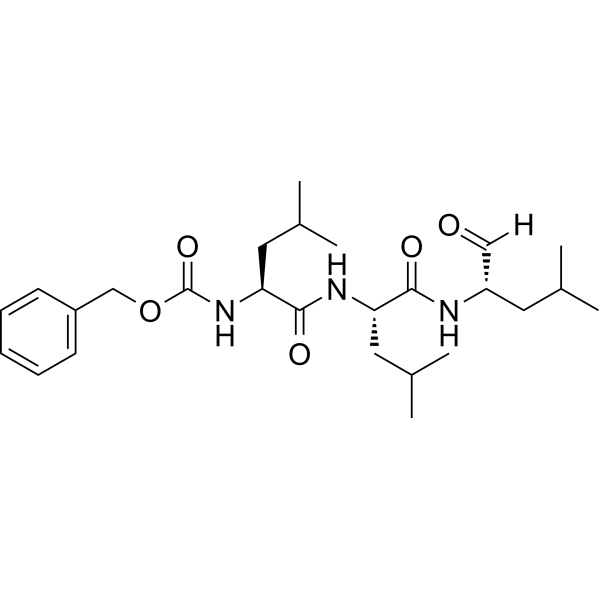 MG-132 is an inhibitor of proteasome with IC50 of 100 nM, and also inhibits calpain with IC50 of 1.2 μM.