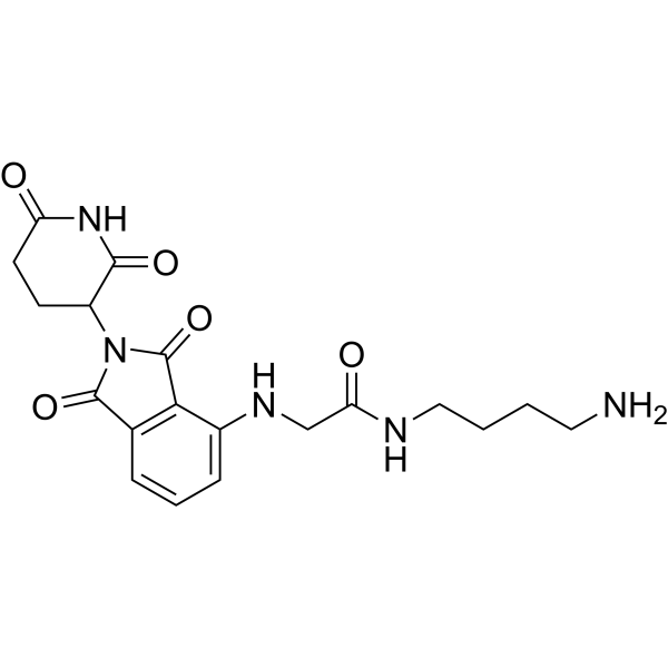 Thalidomide-NH-amido-C4-NH2 is a synthesized E3 ligase ligand-linker conjugate that incorporates the Thalidomide based cereblon ligand and a linker used in PROTAC technology.