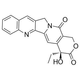 CH-0793076 (TP3076) TFA, a hexacyclic camptothecin analog, is active drug and major metabolite of TP300. CH-0793076 TFA inhibits DNA topoisomerase I with an IC50 of 2.3 μM. CH-0793076 TFA is efficacious against cells expressing BCRP (breast cancer resistance protein).